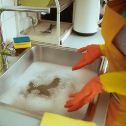 Membersihkan saluran dapur dan kitchen sink yang tersumbat minyak dan kotoran menumpuk.